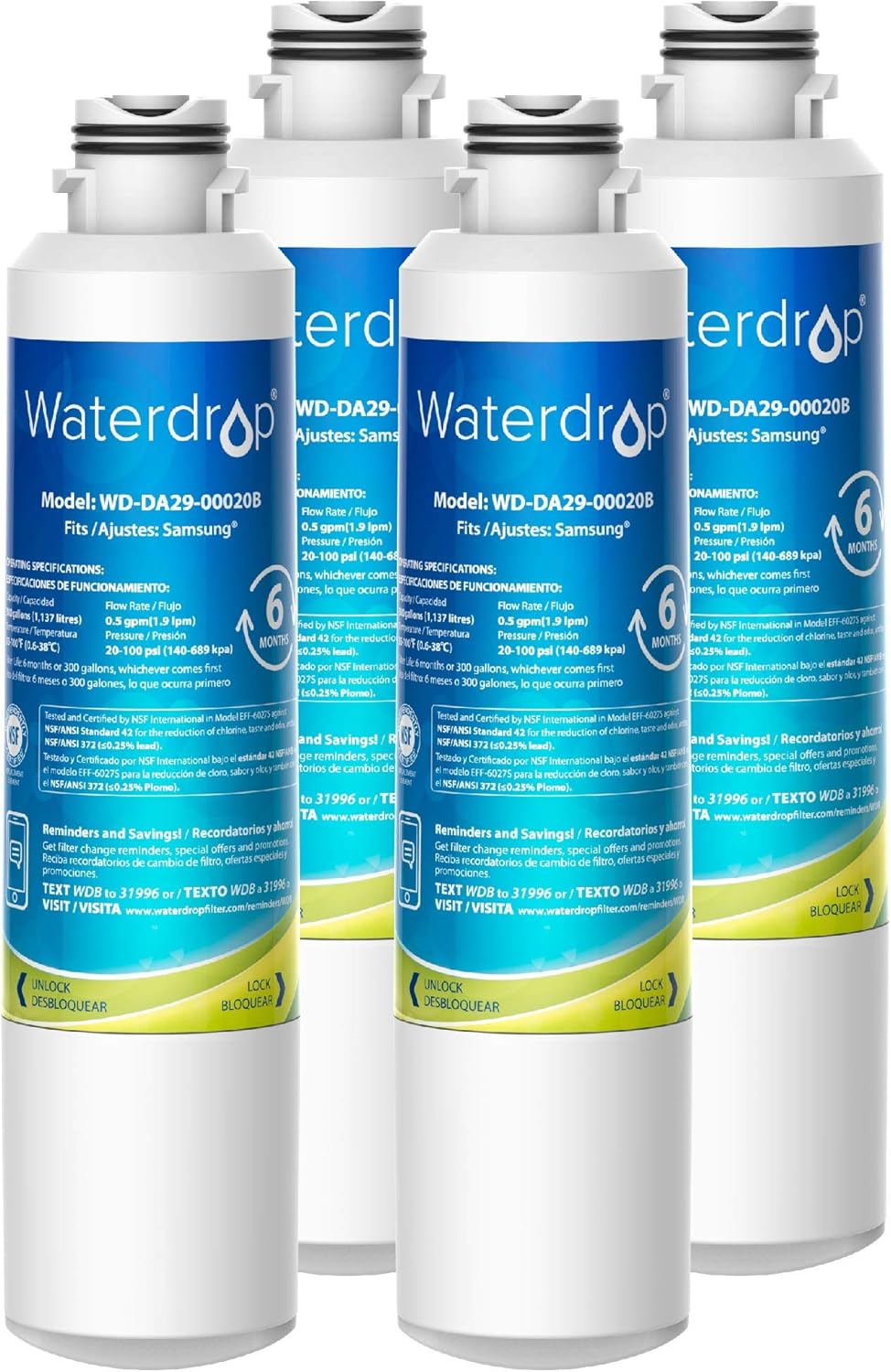 Amazon Com Waterdrop Da29 00020b Refrigerator Water Filter Replacement For Samsung Da29 00020b Da29 00020a Haf Cin Exp 46 9101 Standard Pack Of 4 Home Improvement