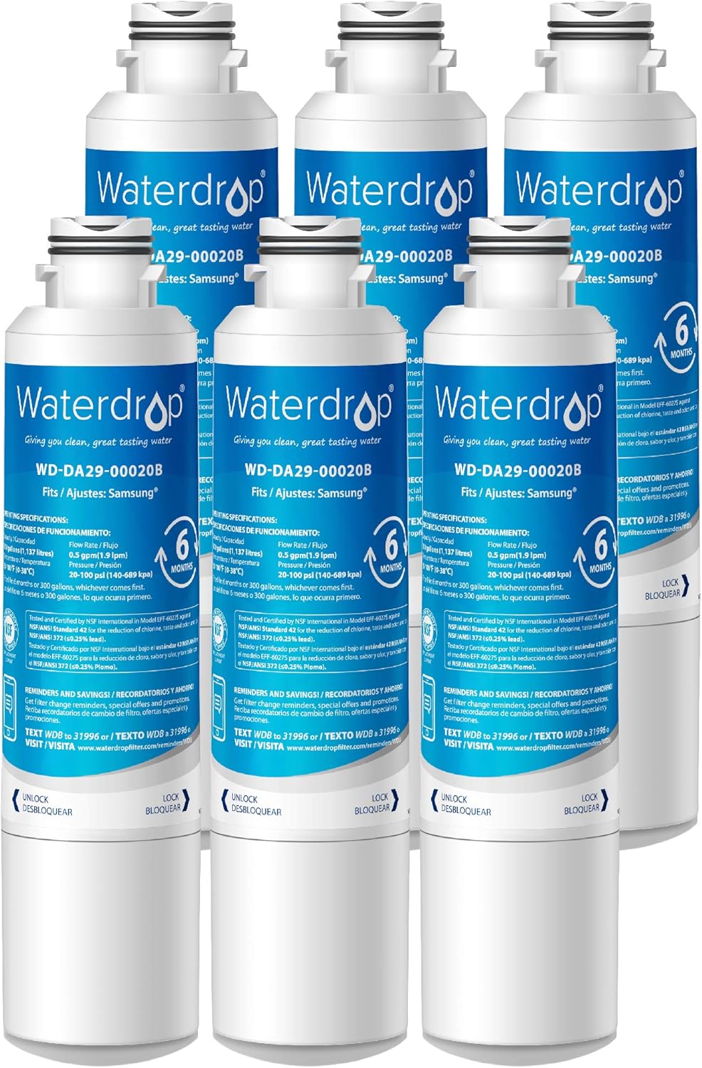 Amazon Com Waterdrop Da29 00020b Refrigerator Water Filter Replacement For Samsung Da29 00020b Da29 00020a Haf Cin Exp 46 9101 Standard Pack Of 6 Home Improvement